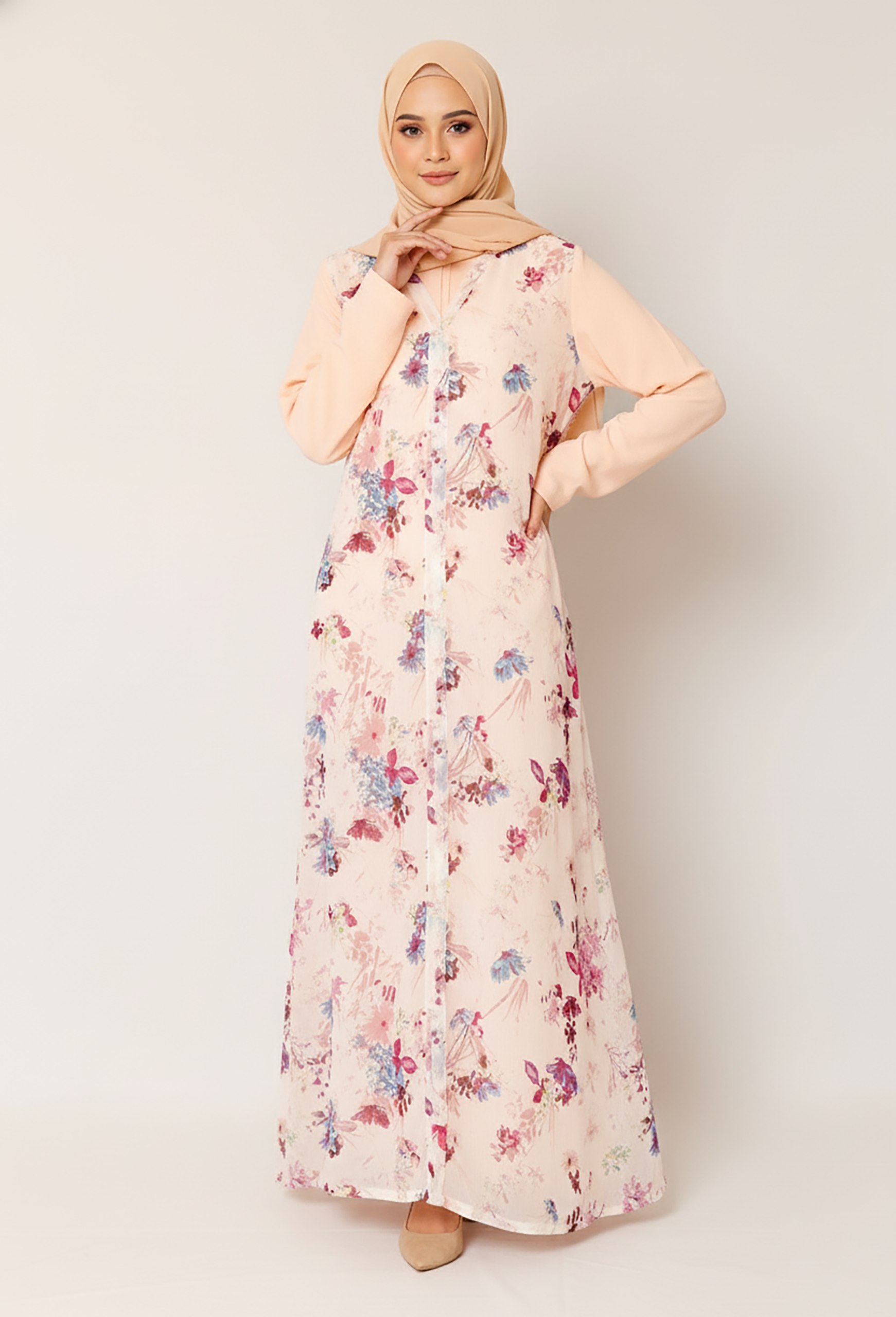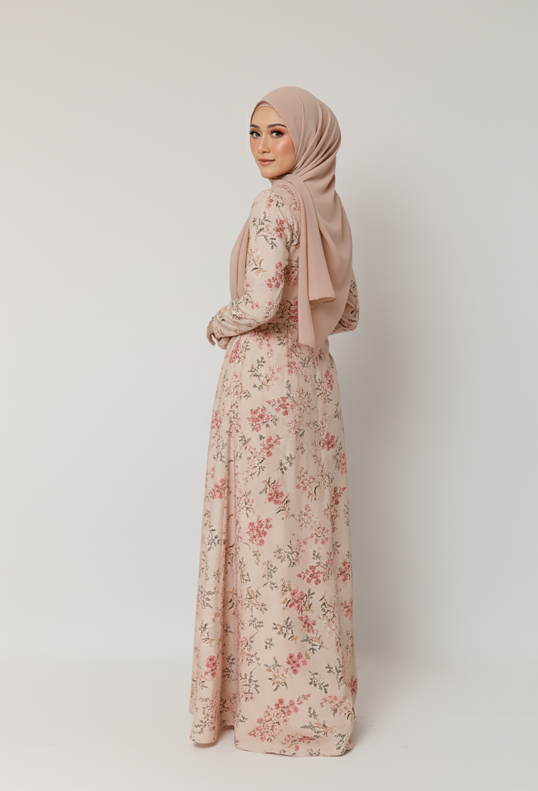 Misty Pink Floral Long Dress