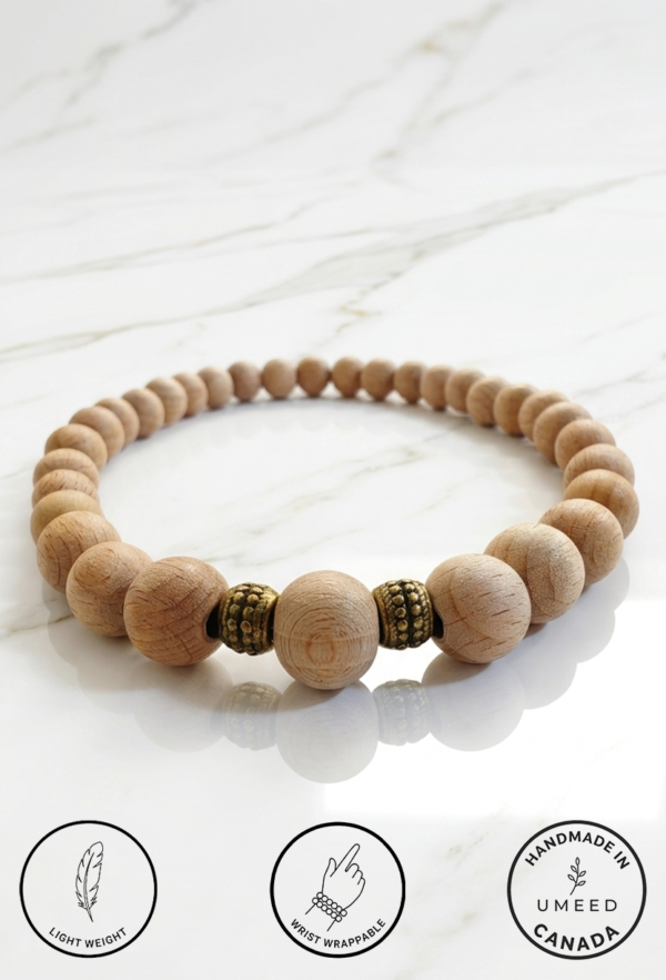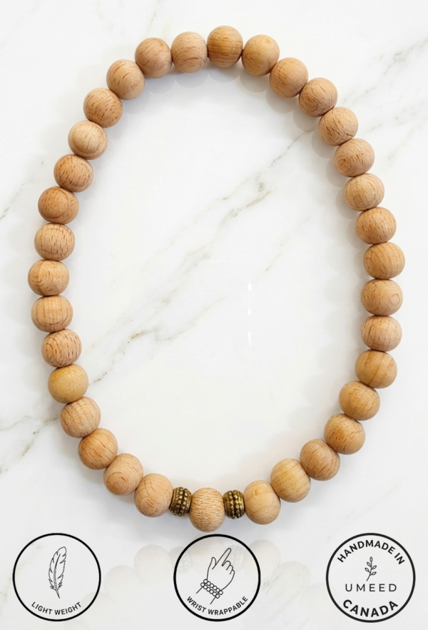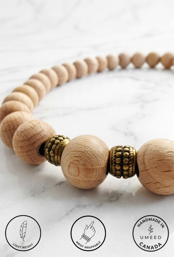 Infused Maple Essence: Features select12mm maple beads, hand-finished to highlight their natural, intricate grain and soft, warm lustre, symbolizing growth and steadfast patience. The beads are infused with our beloved signature scent.
