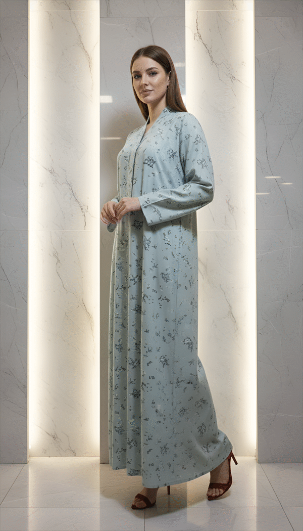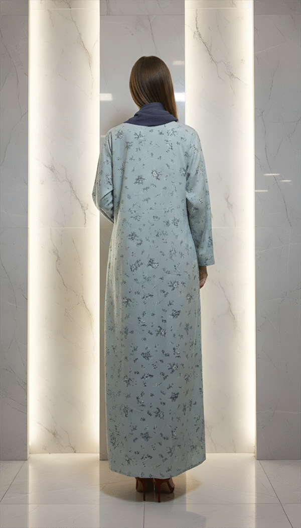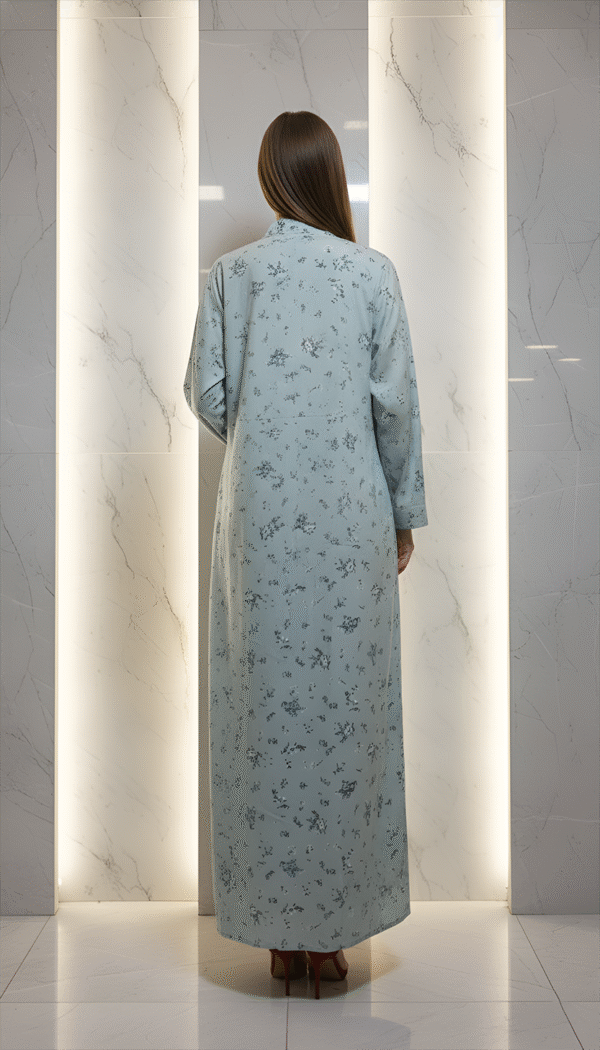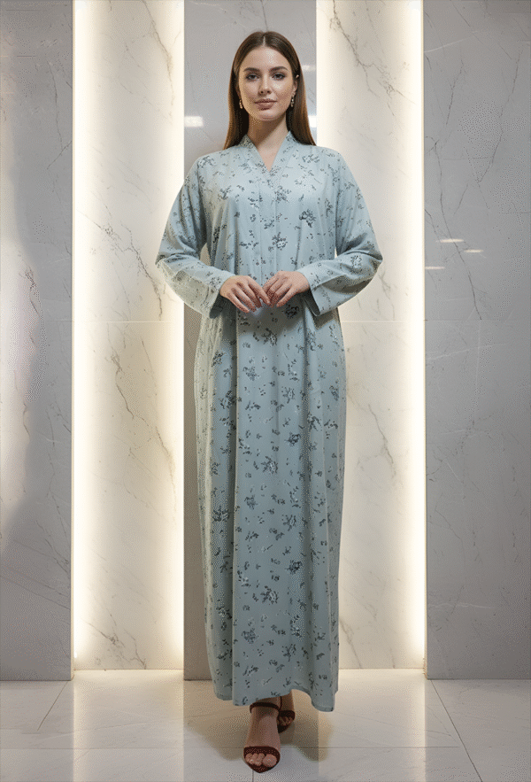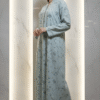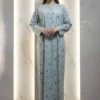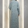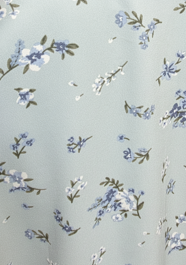 Embrace the serenity of the Mist Maxi Dress, a piece designed to embody the quiet elegance of misty mornings. Crafted from a soft, fluid fabric in a pale, ethereal blue-grey hue, this dress features a delicate, scattered print that mimics drifting leaves in the wind.