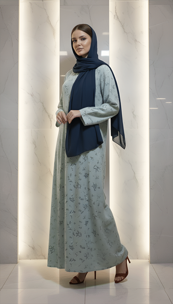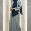 The silhouette is intentionally relaxed and flowing, featuring a modest notch neckline and loose sleeves that offer comfort without sacrificing style. Its understated beauty makes it a perfect canvas for styling, whether worn on its own or paired with a bold, contrasting scarf.