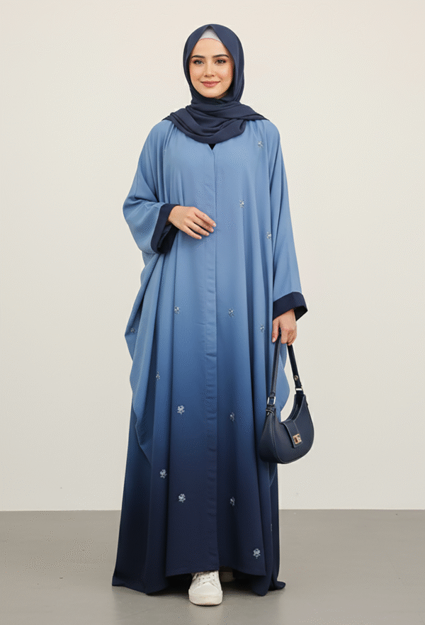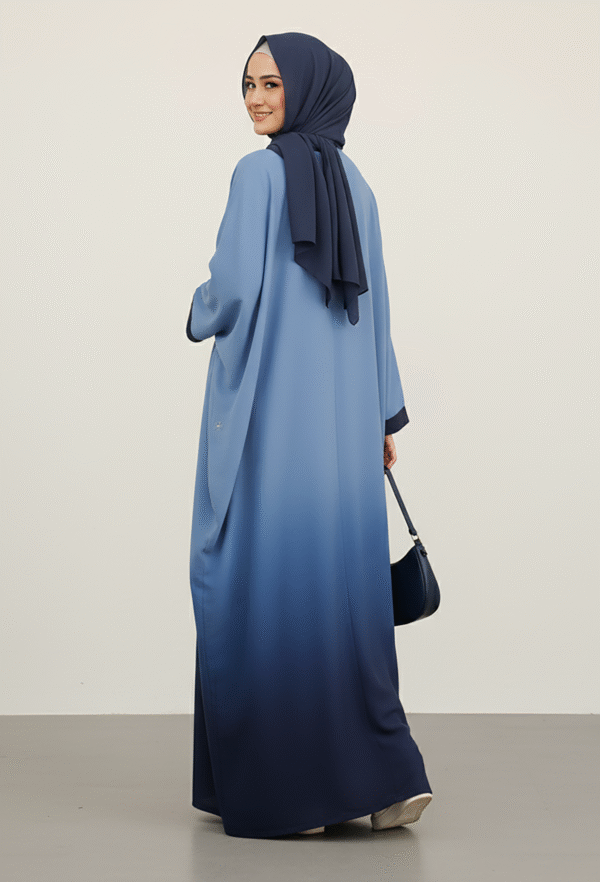 Drift into twilight elegance with the Ombre Midnight Long Dress, featuring a sophisticated ombre gradient from deep midnight to soft hues in lightweight georgette. Its flowing silhouette, modest cut, and refined styling make it a standout in evening wardrobes or special occasions. Elegant, versatile, and graceful — designed for the modern modest fashion lover.