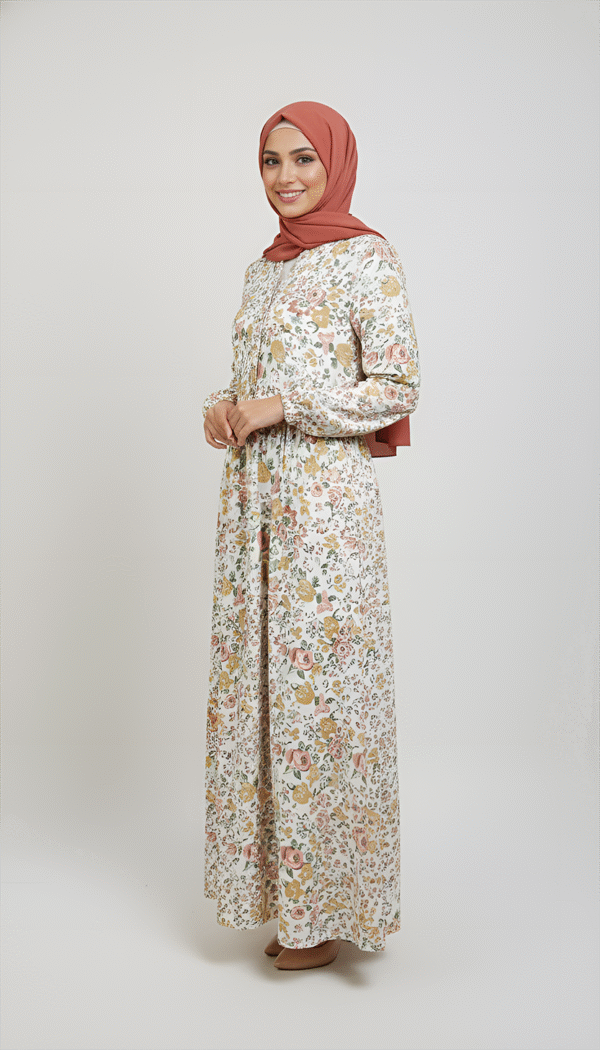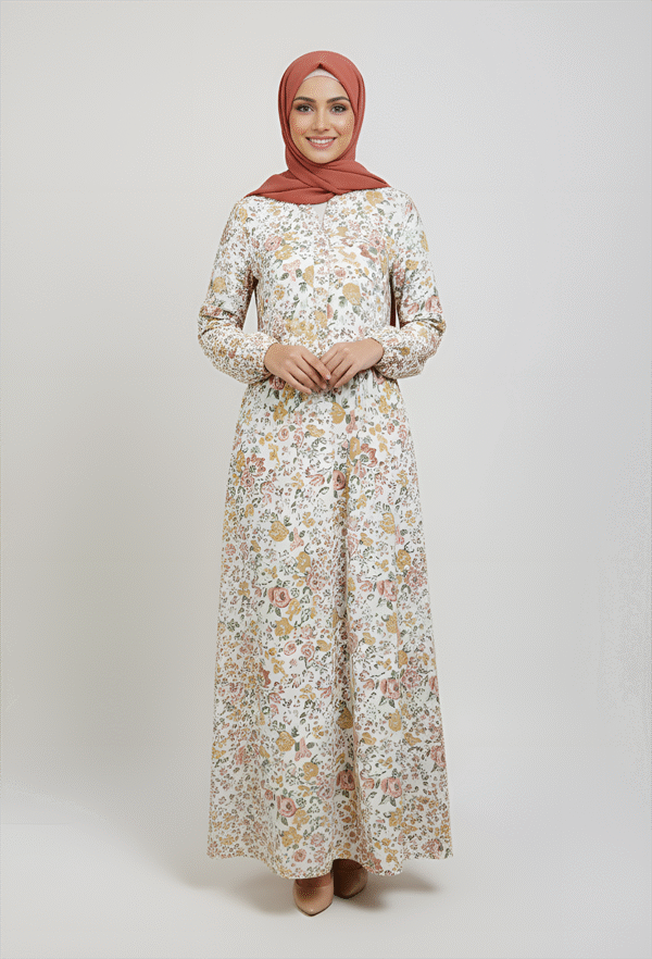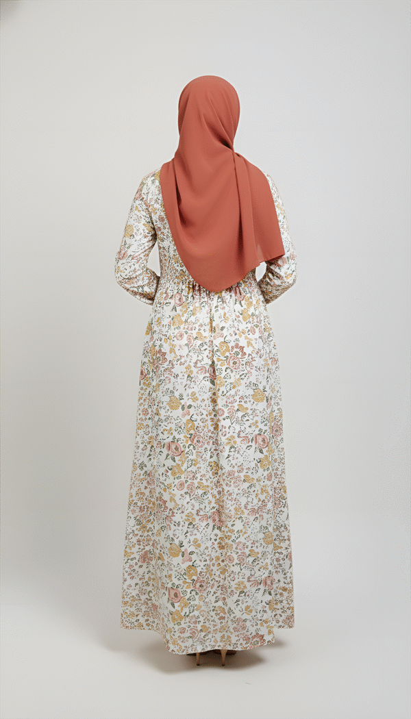 Tailored for both comfort and style, the dress includes a softly gathered waistline that creates a flattering, feminine silhouette without compromising on modesty.