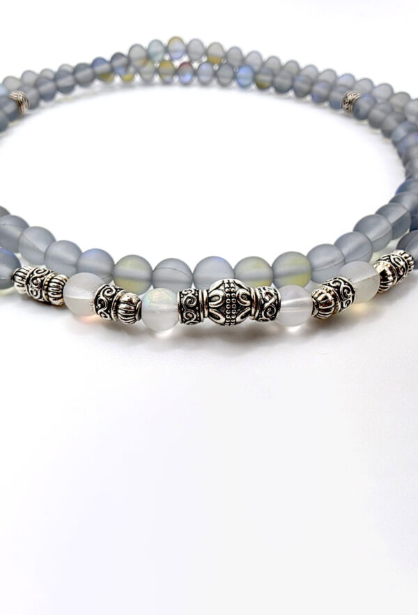 Handcrafted with hand picked synthetic moonstone beads (finely finished inside-out) to ensure quality & longevity, for people who have a passion for uniqueness and exquisite taste.