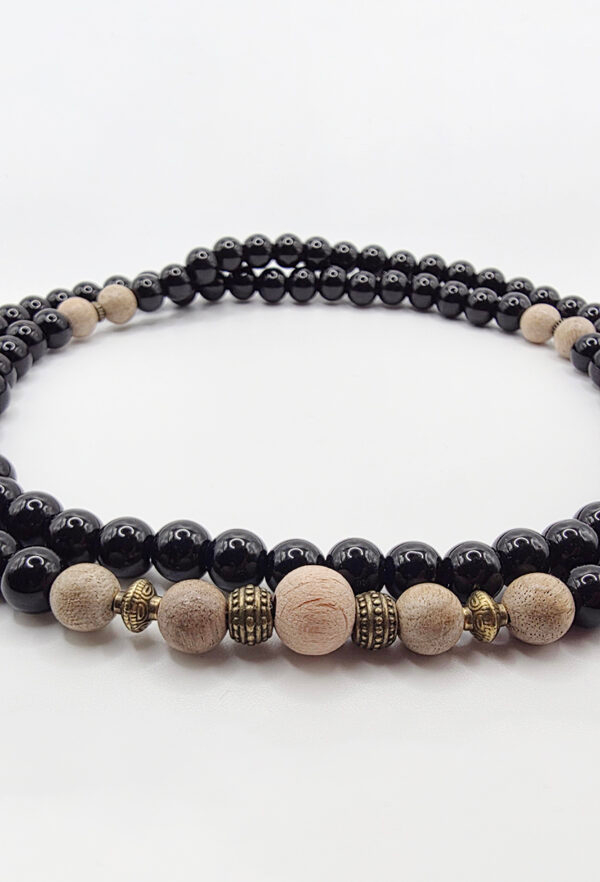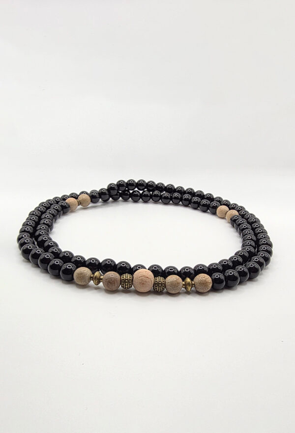 Onyx w/ Cinnamon Wood Misbaha wrist wrap (8mm)