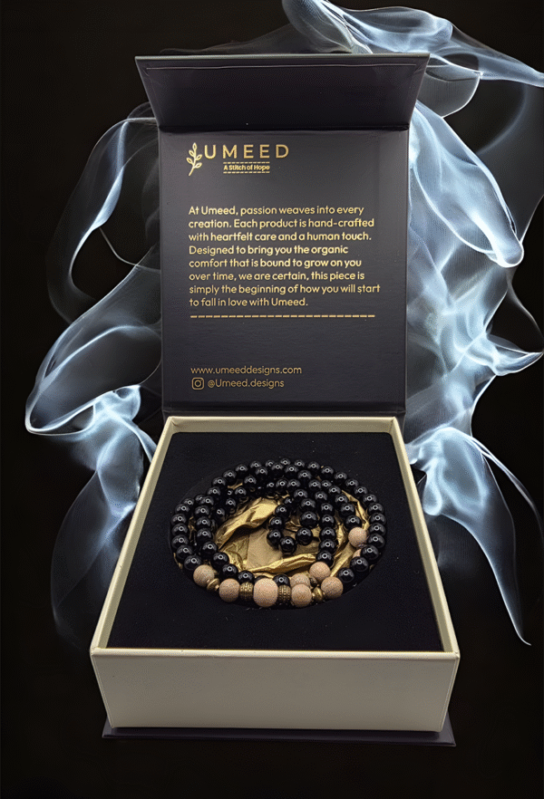 Handcrafted with hand picked Onyx beads (finely finished inside-out) to ensure quality & longevity, for people who have a passion for uniqueness and exquisite taste.