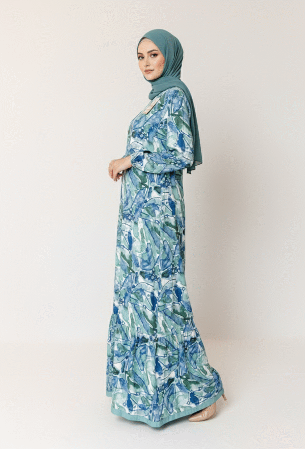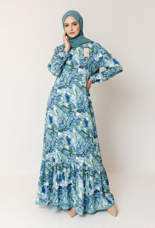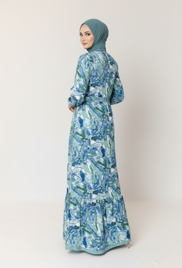 Inspired by the Indigo & Sage hues of River Rocks, this 1- Tier River Rock Abstract Maxi Dress Set adds a touch of life & natural beauty to any environment.
