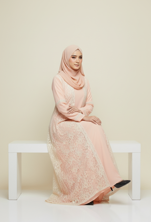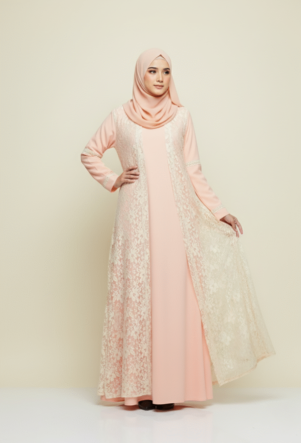 The Layered Lace & Soft Pink Co-ord set is designed to make you feel effortlessly chic and stylish! With it’s light weight feel, comfort & beautiful lace detailing coordinating duster, this ensemble is sure to make you feel what it means to have a perfect balance between Style, Modesty & Comfort!