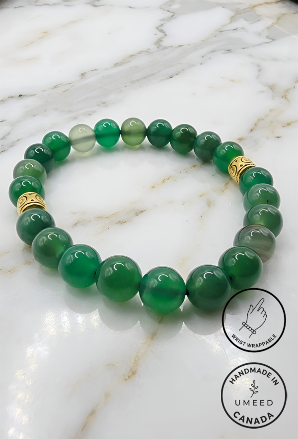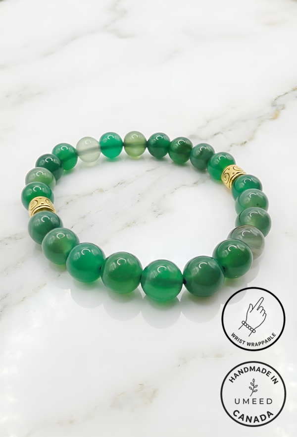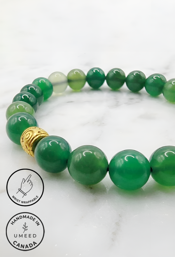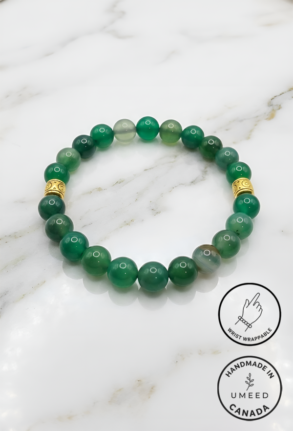 • Lustrous Gemstones: Features hand-selected Green Agate, known for its stabilizing energy and rich, forest-toned aesthetics.