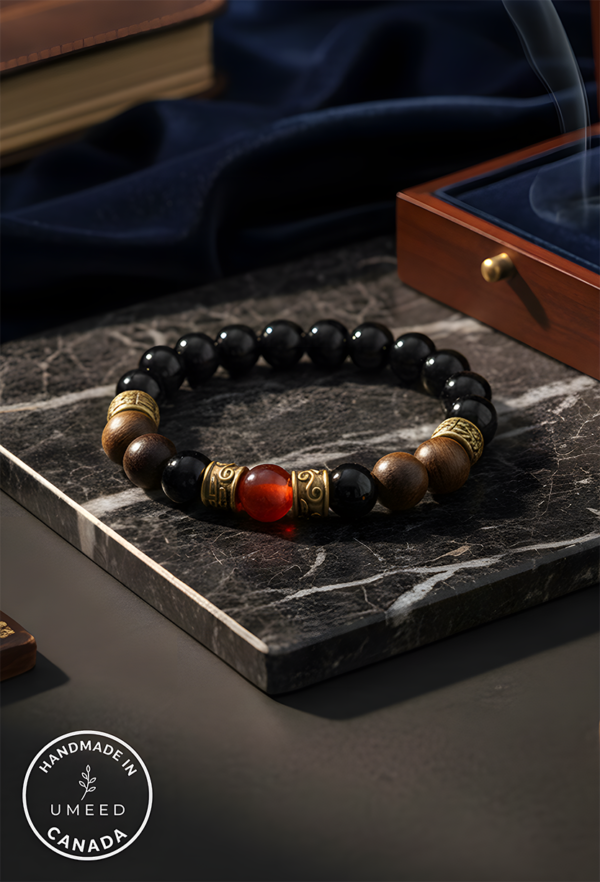 Sultan’s Circle: Designed to be worn as a statement bracelet and/or used for meditation, it features a sophisticated palette of deep blacks, rich woods, and fiery accents.
