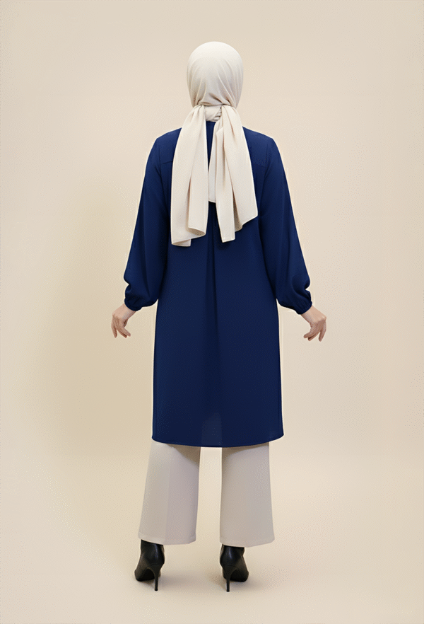 A celebration of modern modesty, the Oslo Tunic is an essential piece for an effortlessly chic wardrobe. Crafted for a sleek silhouette, its sophisticated design features a round neckline and an elongated, flattering knee-length. The focal point is the voluminous balloon sleeves gathered elegantly at the cuff, adding a touch of drama and femininity. Wear it over wide-leg trousers for a refined, contemporary look that transitions seamlessly from day to evening.