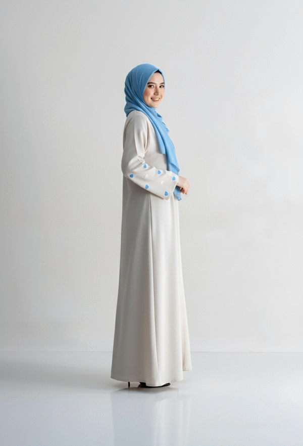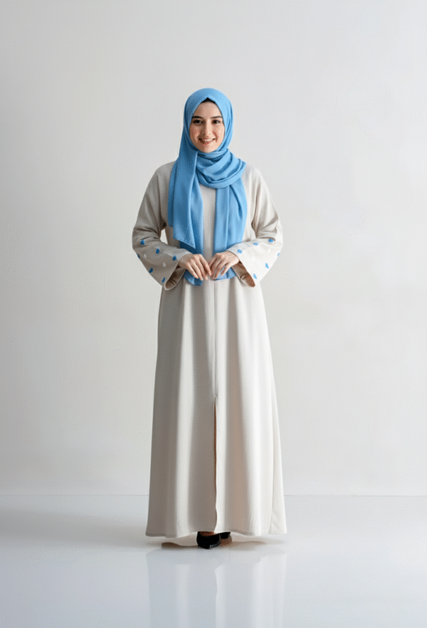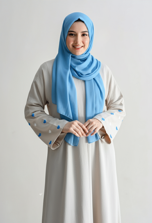 Elevate your modest wardrobe with Whispers of Azure, a serene maxi in delicate CEY that blends ethereal flow with refined elegance. Soft azure hues and subtle detailing make it ideal for special occasions or everyday grace. Lightweight, modest, and beautifully draped — it transitions beautifully across seasons.
