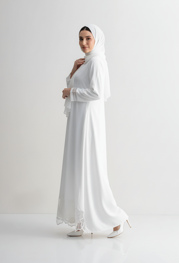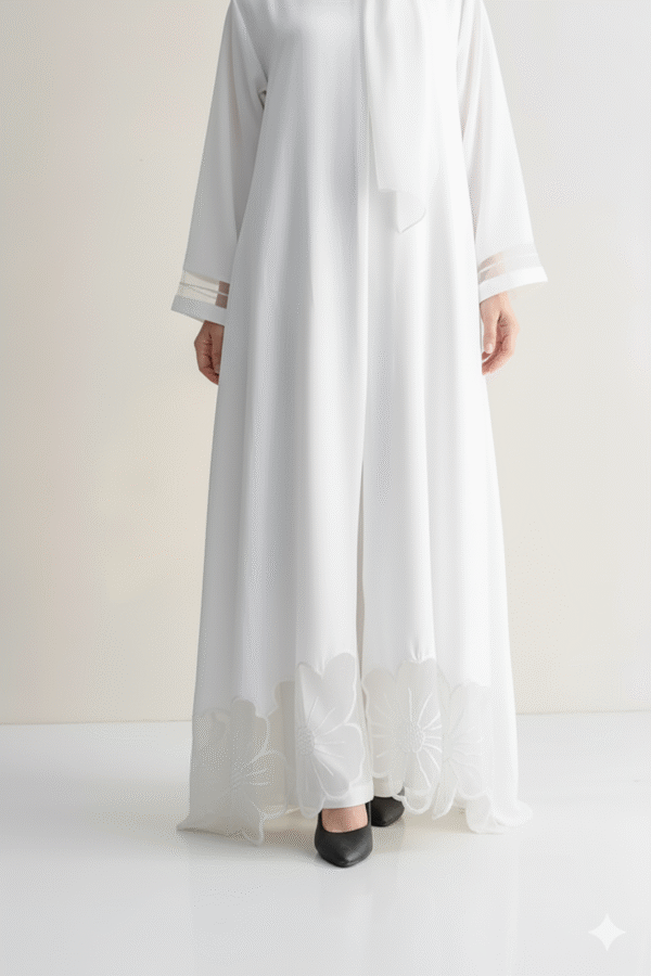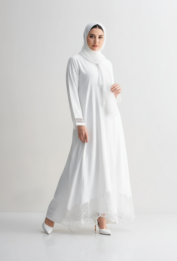 The White Applique Dress is a graceful, statement maxi crafted from premium Nada, beautifully adorned with delicate white appliqué detailing for a luxe yet subtle texture. Its pure tones and elegant structure make it ideal for weddings, special events, or refined everyday wear. Lightweight, modest, and eye-catching — a true blend of elegance and versatility.
